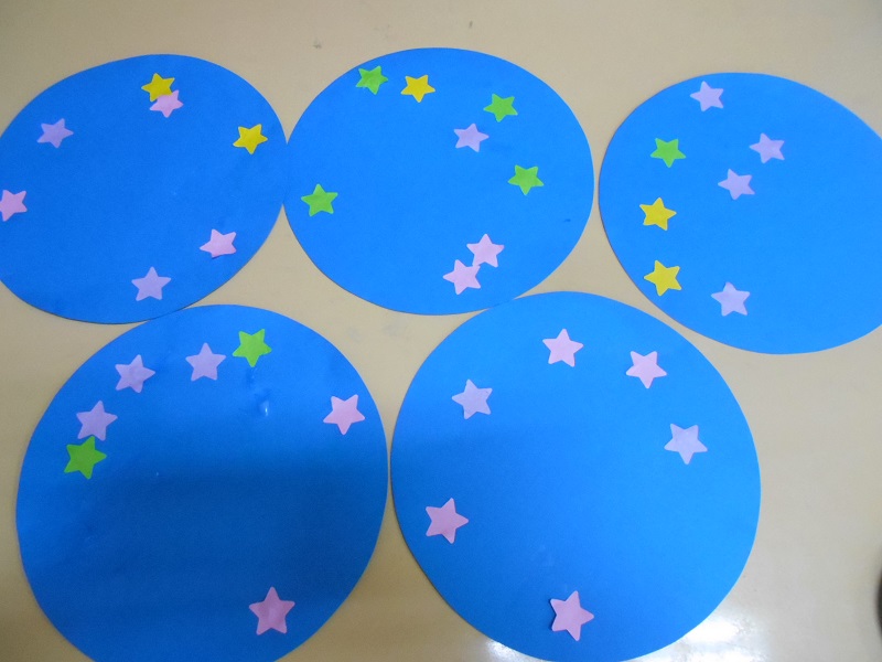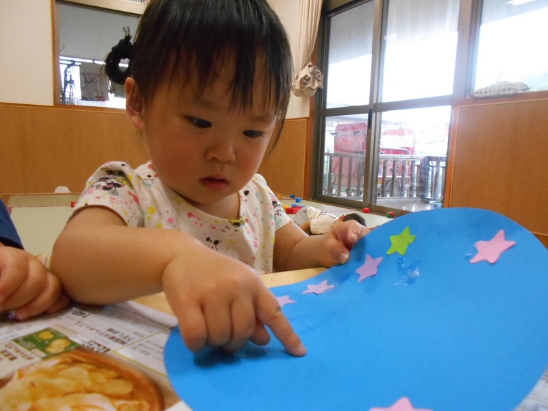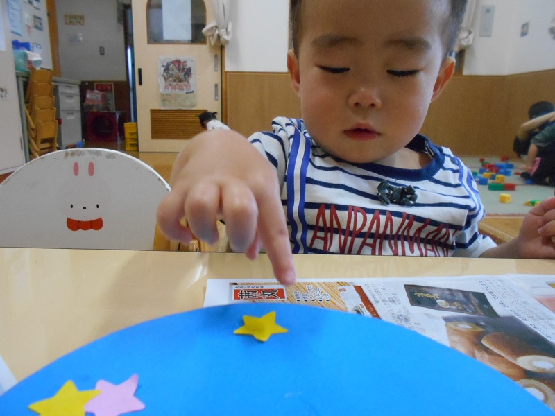 のりをつける時に、星が動かないように左手で押さえているお友だちがいましたよ✨