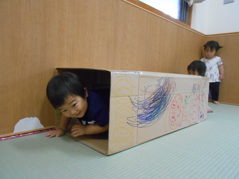 段ボールを組み立てて「うさぎトンネル」の完成✨