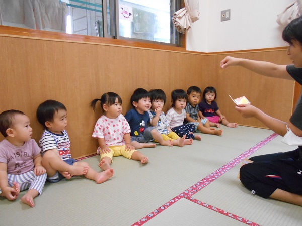 壁さんの前に座って保育者の話をよ~く聞いていましたよ!