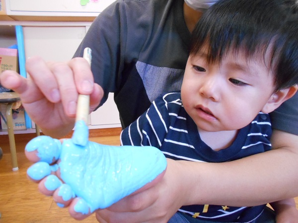 お次は...足の裏に絵の具をぬりぬ~り☆