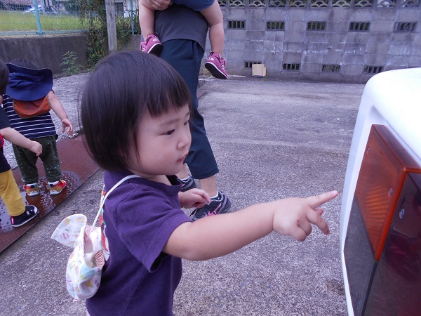 自分の服についているバスの絵を、「ばす!ばす!」と指さしていましたよ♪