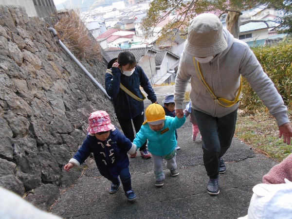 坂道も「よいしょ、よいしょ」と言いながら頑張って歩くうさぎ組さん!!