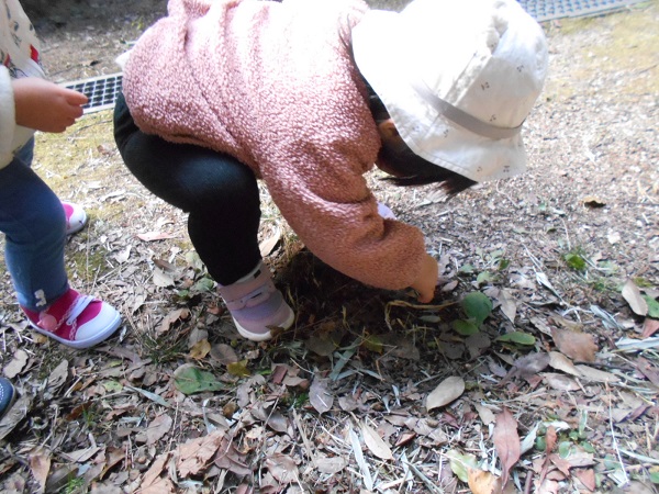 「どんぐり~」と言いながら拾っているうさぎ組さん(笑)