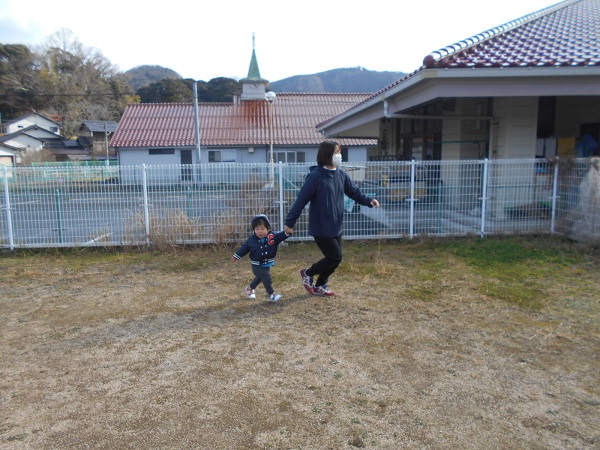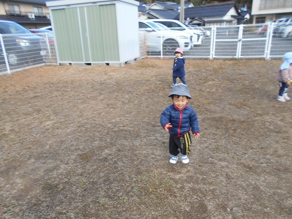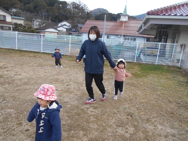 保育者や友だちと一緒に手をつないで走ったり、追いかけっこをして身体を動かし、元気いっぱい遊んだうさぎ組さんでした■