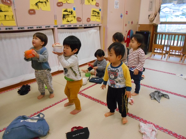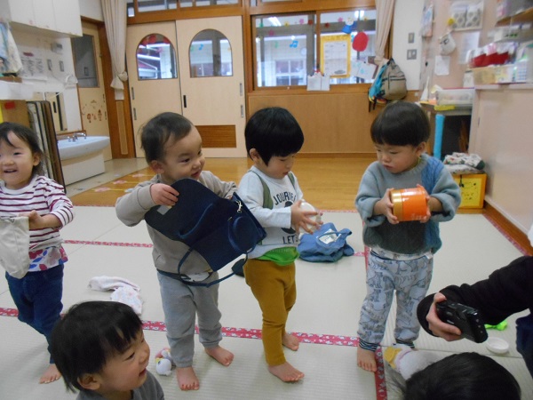 2022年01月24日 みーつけた!りんご組さんと一緒に宝探しをしました。保育者が、かばんやぬいぐるみ、カップの中に宝を隠します!「どこかな~?」と一生懸命探しましたよ■宝が見つかると、「あったー!」と嬉しそうな表情を見せてくれました■