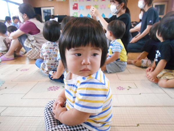 誕生日の歌では、保育者と一緒に手拍子をしたり、身体を揺らしたりしている姿が見られました♬