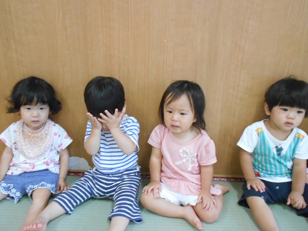 初めは保育者が隠れます。目を隠して一緒に10秒数えましたよ。