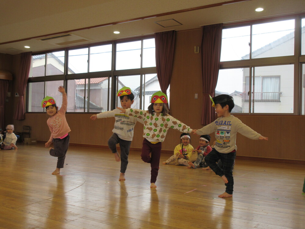 ばす組さんとひこうき組さんのお楽しみ会での発表を見せてもらいました。