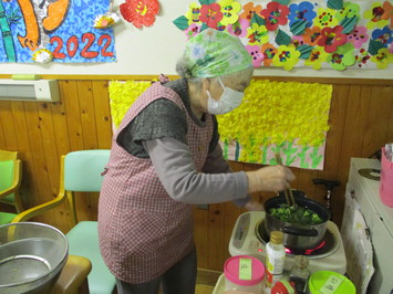 味付け・盛り付けをして完成です!「丁度いい味が付いてるよ」「今度食べたいものをリクエストしようかなぁ」と皆さん美味しく召し上がられました。調理活動は、完成品が目に見えるので達成感が得られ、出来たものを食べる楽しみもあります!役割があることで自信の回復にもつながります。