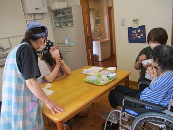 今日は家族介護教室を開催しました。家庭でどんな物を食べてもらったらいいのか、ミキサー食だけどミキサーが無い場合はどうしたらいいのか悩んでおられるご家族様をお招きして簡単に美味しく作れるレシピを一緒に作って頂きました。
