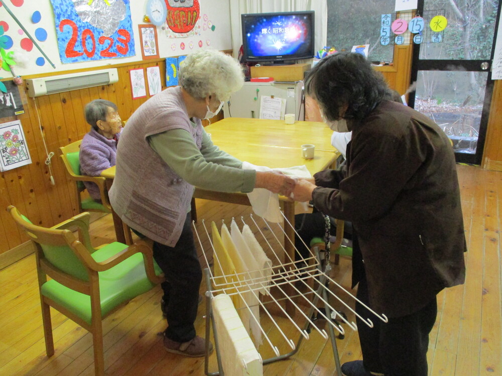 「洗濯畳みなら任せて!」と手際よくタオルを畳んでおられます。