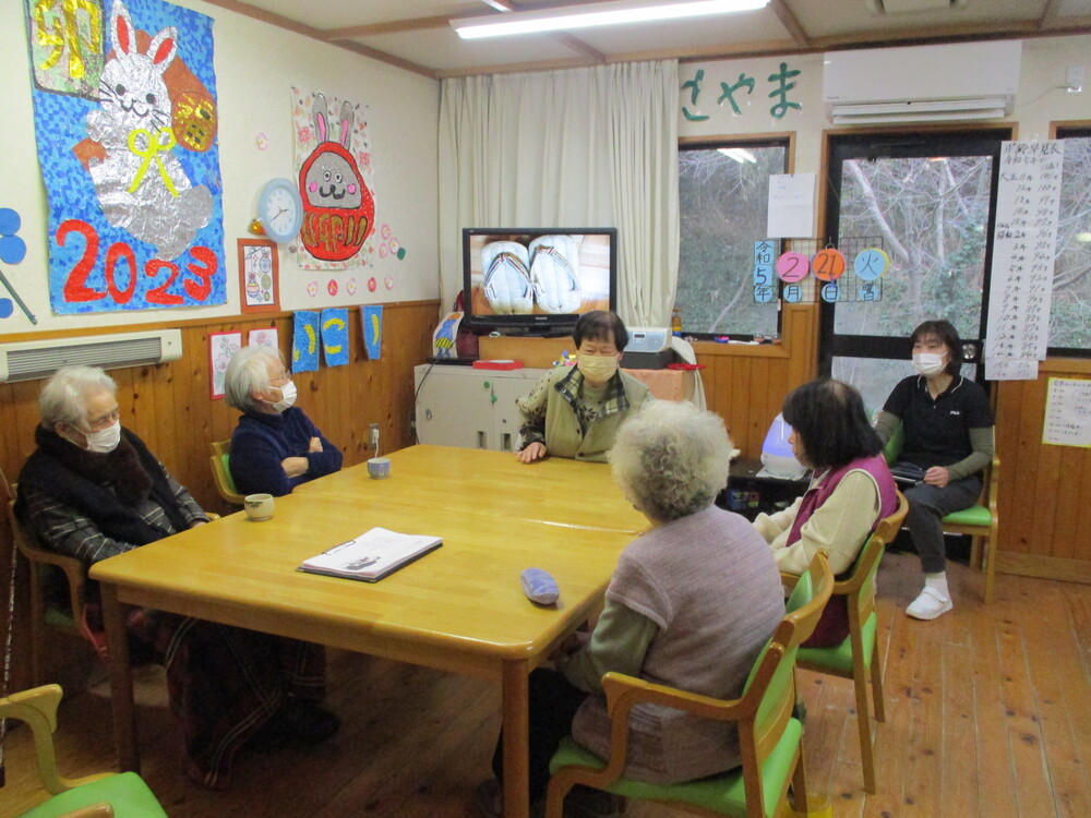 皆さんと一緒に(憩い) 2023年02月21日 午後からの活動は体操と回想法をしました。 いつも数人で行いますが今日は皆さん一緒に行いました。 回想法では昔使っていた道具を見ながら、昔の話をたくさんして下さいました。