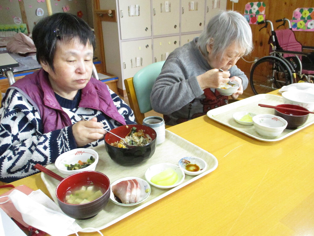ごちそうさまでした 2023年04月18日 みなさんが楽しみにしている選べるメニューの日です! 「ビビンバ丼」と「温玉とろろ丼」でした!! 「新鮮な刺身がとてもおいしかった。」「肉が入ってた丼ぶりがおいしかった。」 どちらの丼物も、とても好評でした!