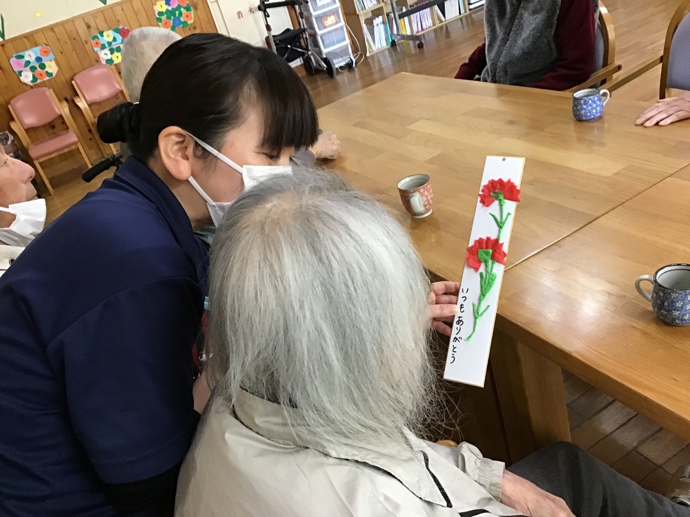 目標を持って 2023年05月08日 今日もリハビリルームは大盛況☆ 皆さんがいつも頑張っておられるのは、お一人お一人目標があるからです。 Oさんはご自宅の前に長い坂があり、1人で安全にゴミ出しが出来るようになりたいという目標があります。 あさやまの前の坂で理学療法士と自宅を想定した応用歩行を行っています。 天気も良く、話もしながら楽しく訓練が出来た!と言ってくださいました!! もうすぐ母の日!! 男性利用者様達と相談しながら素敵なプレゼントを作成中です☆皆さんまだ内緒でお願いしますね!!