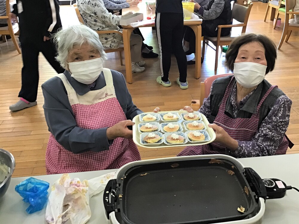 おめでとうございます! 2023年05月10日 今日は母の日にむけて、日頃の感謝を込めたプレゼントを作りました! Sさんは「喜んでもらえるかな?」と奥様に向けて感謝の言葉も書かれていました。 おやつクッキングも行っています。今日はふわふわのパンケーキです。 Sさん、Mさんが上手に焼いてくださいました! 「美味しいね!」と好評でした!!! 今日はAさんのお誕生日でした。 お誕生日カードをお渡しすると、とても喜ばれていました。 仲の良いYさんとも写真を撮り、楽しく過ごされています!