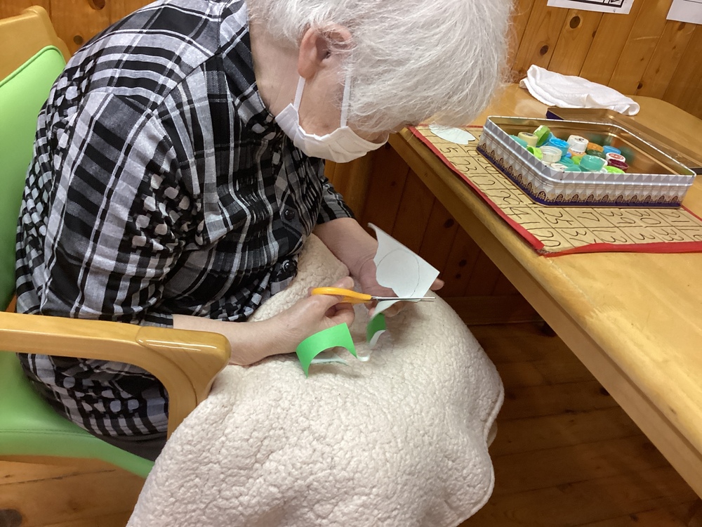 6月スタート(憩い) 2023年06月01日 全身を! 本日は畳の体操から! 「1・2・3・4!」と皆さん声を合わせて身体を動かしておられます! 「身体が熱くなった!」といわれる方もおられました! 個別リハでは廊下での歩行訓練やストレッチなど 利用者様に合ったリハビリを行っています! 6月といえば? 本日から6月という事で、早速今月の 手芸作品の作成に取り掛かっています! 今回は、いつもと違う作品に挑戦しようと考えています! お楽しみに!