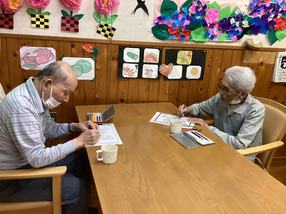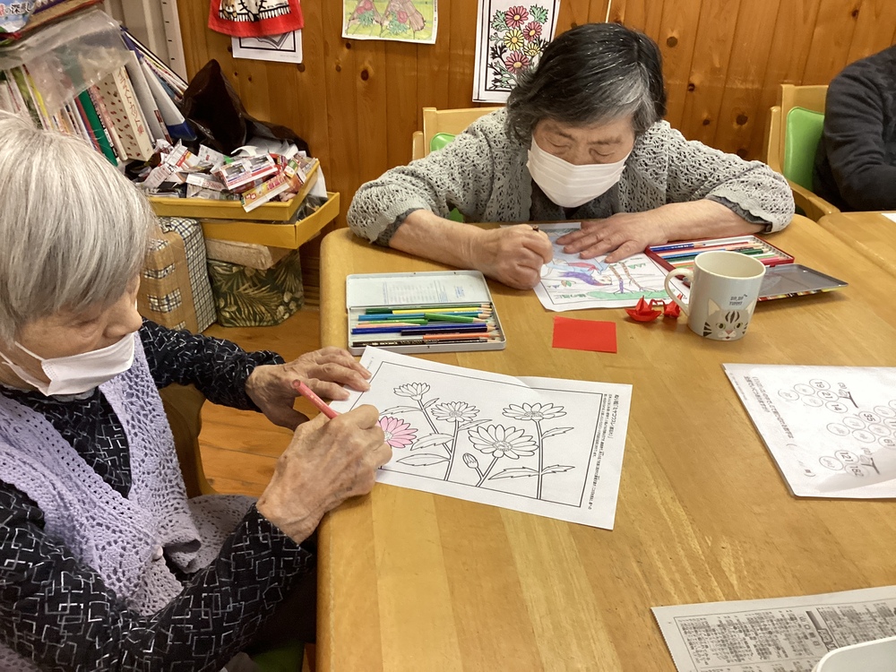 得意な事(憩い) 2023年06月05日 一斉清掃 日曜日に行われた朝山町の一斉清掃に参加させて頂きました。 午前中は... 午前の活動は皆さん脳トレをされていました! 塗り絵が好きな方が多くおられ、 「ここは何色にしようか?」等と話合いながら 塗っておられる方もおられました! 咲きました! 玄関には、先日植え替えを行った ペチュニアがきれいに咲いていました! 「綺麗な花だね~」と見惚れておられました!