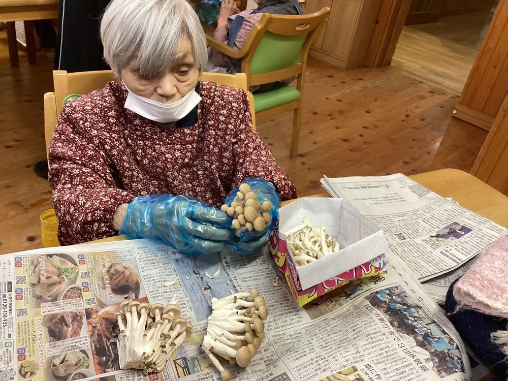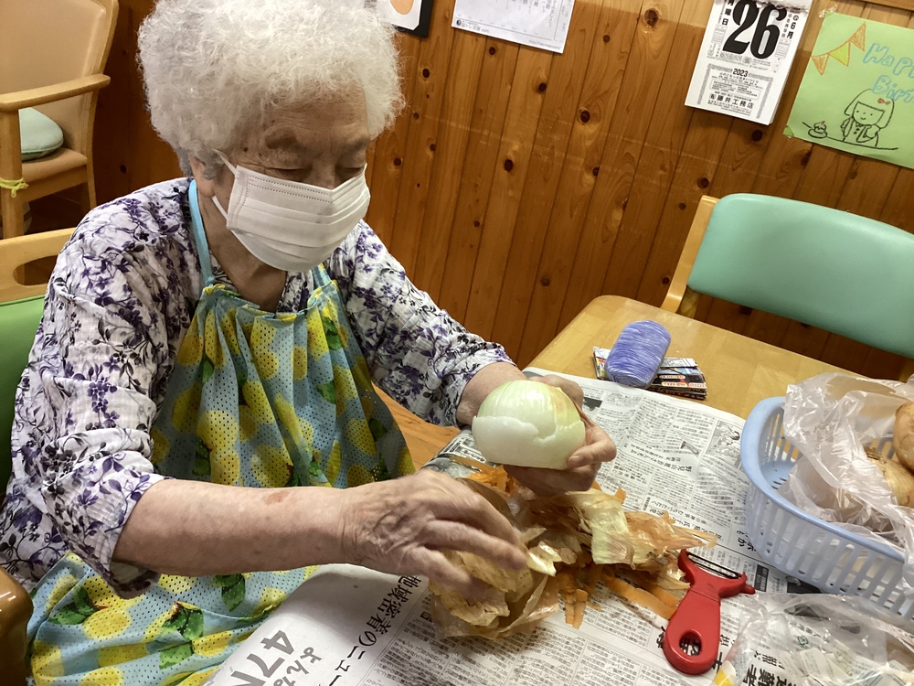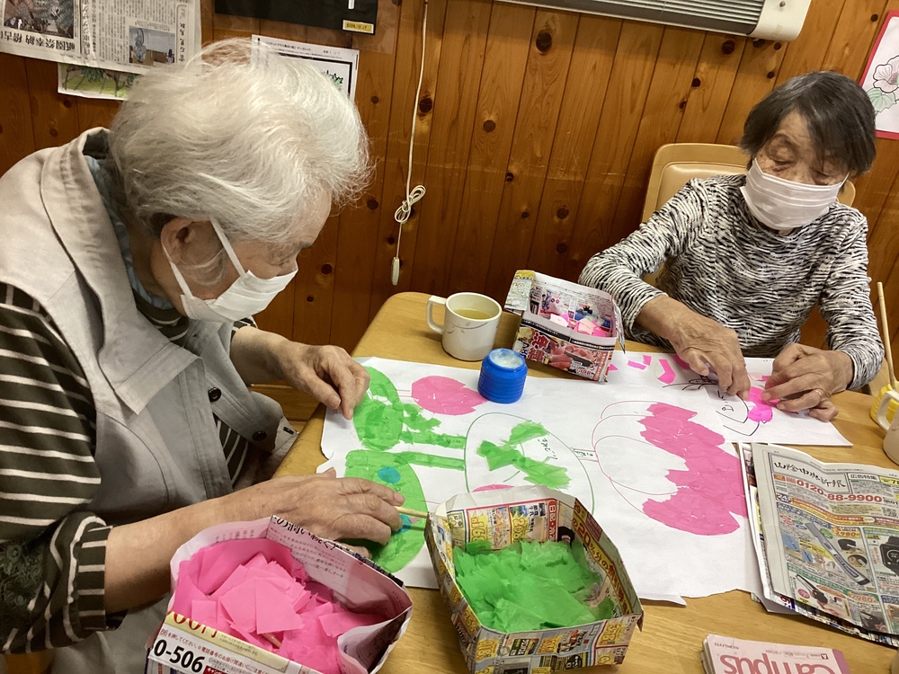 順調(憩い) 2023年06月26日 順調です! 手芸作品も順調に進んでいます! 先週から「スイレン」のちぎり絵作品も作り出しており、 皆さん集中して作業されていました! 午後からは、野菜の下処理を手伝って頂きました! 野菜も順調です! 本日はあいにくの雨で外に出て野菜の様子を見ることは出来ませんが、 野菜たちは順調に育っています! 収穫が楽しみです!