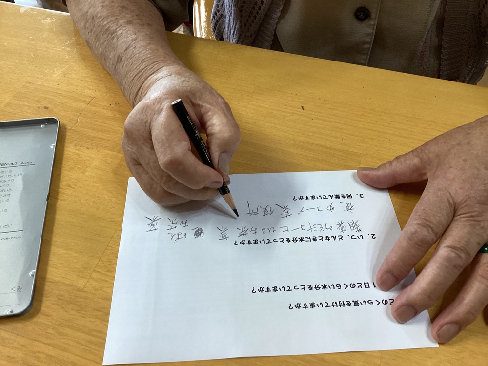 毎日暑いですね 2023年07月12日 看護師による脱水予防教室を行いました 自分の水分摂取量の把握や、脱水になっているサイン等を一緒に勉強していきました。 普段のコップがどのくらいの量入るのか皆さんと一緒に確認していきました。 「こんなに飲まんといけんのんだね」「私は1日の飲む量をちゃんと測って飲み切るように頑張っとるよ」と、色々な話も出ていました。 もうすぐお誕生日ですね!! 「何歳になったかいなぁ」と照れておられました。長生きの秘訣は「良く寝て、よく食べる事」との事です!