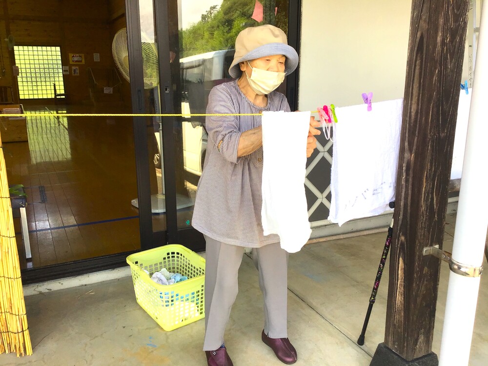 梅雨明け 2023年07月20日 梅雨が明けました!!! 天気が良かったので、Aさんに協力していただき体操で使うタオルを干しました。 「家でやってるけんね。まかせて!」と手際よく干してくださいました。 梅雨が明け暑くなりましたが、みなさん体操を意欲的に取り組まれていました。 体操だけでなく、リハビリルームでのリハビリも頑張っています!! 暑さに負けない体を作っていきましょう!!!