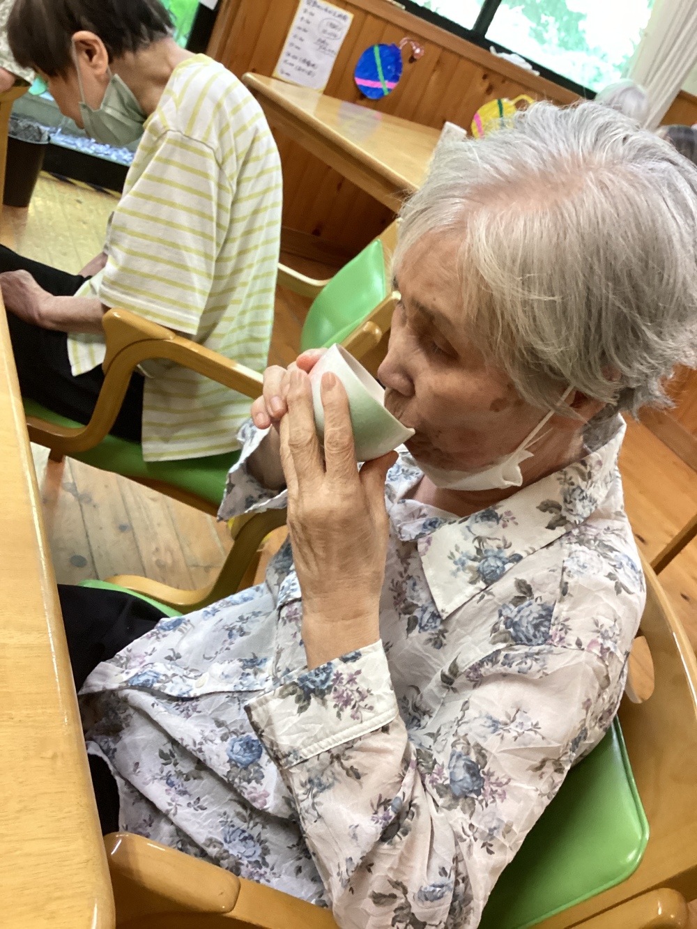 暑さに負けないように(憩い) 2023年08月21日 お盆が明けましたが、暑さはまだまだ…ですね 県内でも熱中症予防を呼び掛けています。 涼しい館内で運動 館内散歩で実ったゴーヤを観察 リハビリルームで頭と身体を使った全身運動 畳の体操でしっかり身体を動かします。 水分補給で身体を潤します ご利用時は、時間を決めて1000ml程度水分摂取で体調管理をしています。
