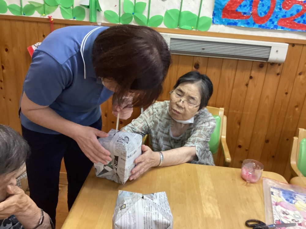 学生さんは折り紙が得意とのことで、利用者の方々に四葉のクローバーを教えてもらいました。