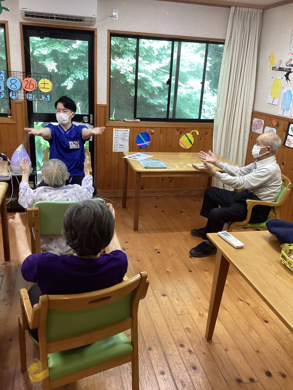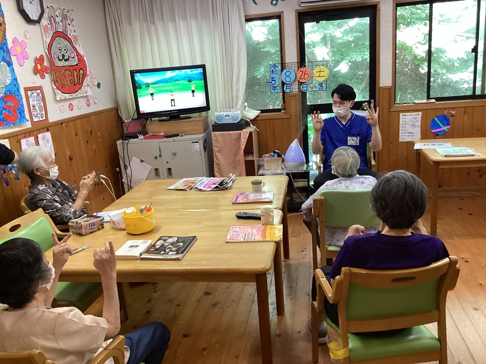 午後活動、始めに機能訓練指導員による体操から!
