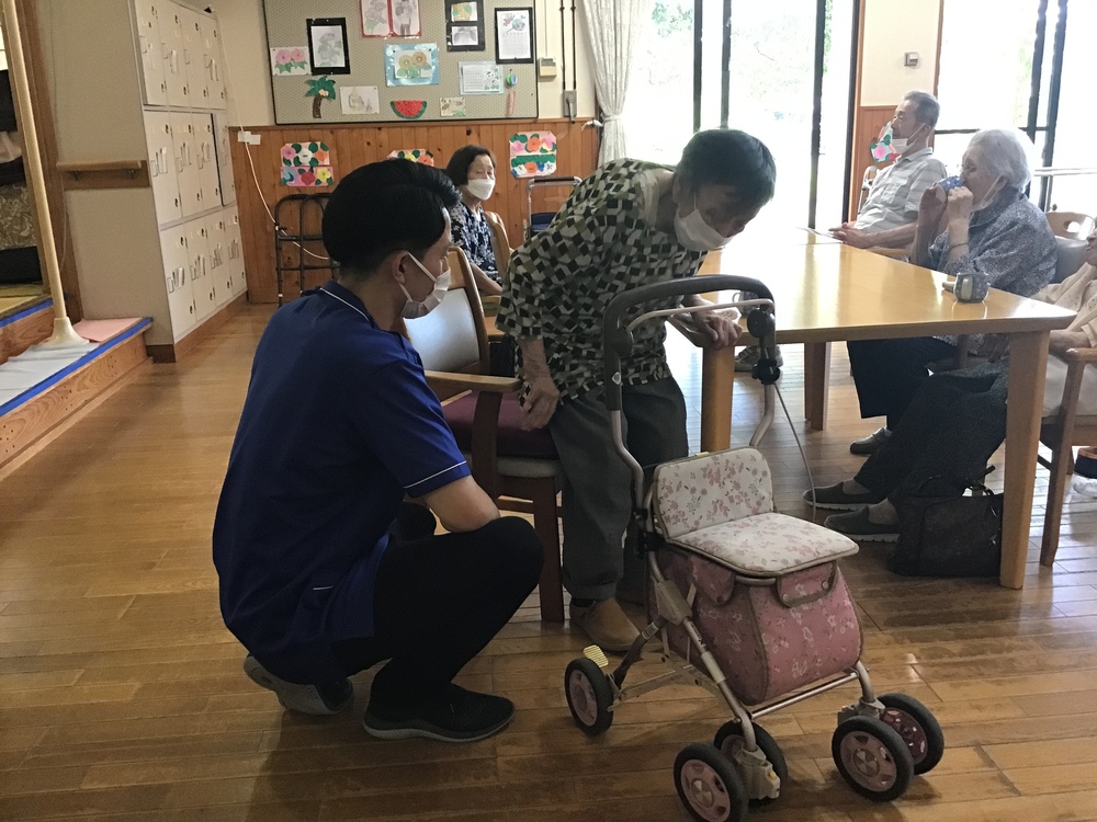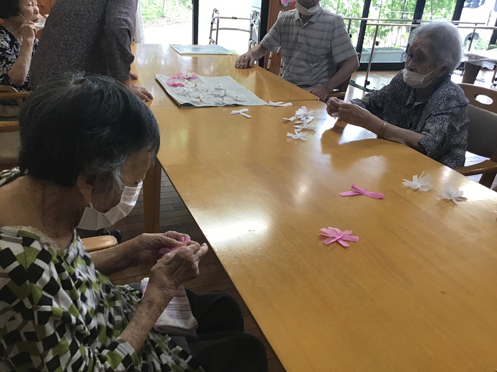 少しの工夫で! 2023年08月30日 お悩み解決します!! 「椅子から立つのがいたしくて、1人で安全に立ちたいなぁ」と、機能訓練指導員に話すHさん。 クッションを入れて椅子の座面を高くしてみました。 「さっきより良くなったわ、ありがとう」 家にあるもので簡単に、少し工夫をする事でお悩み解決出来ました。 来月に向けて・・・ 皆さんに作って頂いたコスモスがたくさん咲きました。 皆さんに聞きながら月の位置やウサギの位置を決めています!!