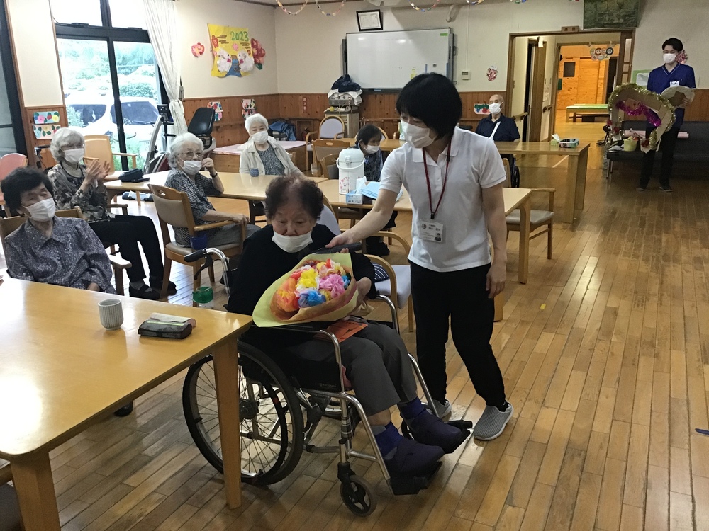 秋ですね 2023年09月05日 今日は「秋桜」や「赤とんぼ」を作って頂きました! 9月に入りましたが、まだまだ暑い日が続いています。秋の風景を感じてもらえたらいいです。 お誕生日おめでとうございます!