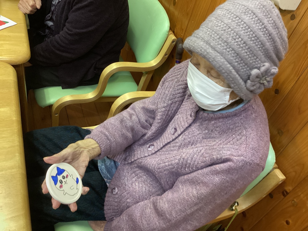 チャレンジ!!(憩い) 2023年12月02日 今日はコースター作りをしました!! 画伯が多く、「このイラストを描いてみよう」「上手に描けたら孫にあげようかな」と出来上がりを楽しみに作業されましたよ!! 12月に入り、あっという間にお正月!!2023年もあとわずか・・・カウントダウンスタートです!!