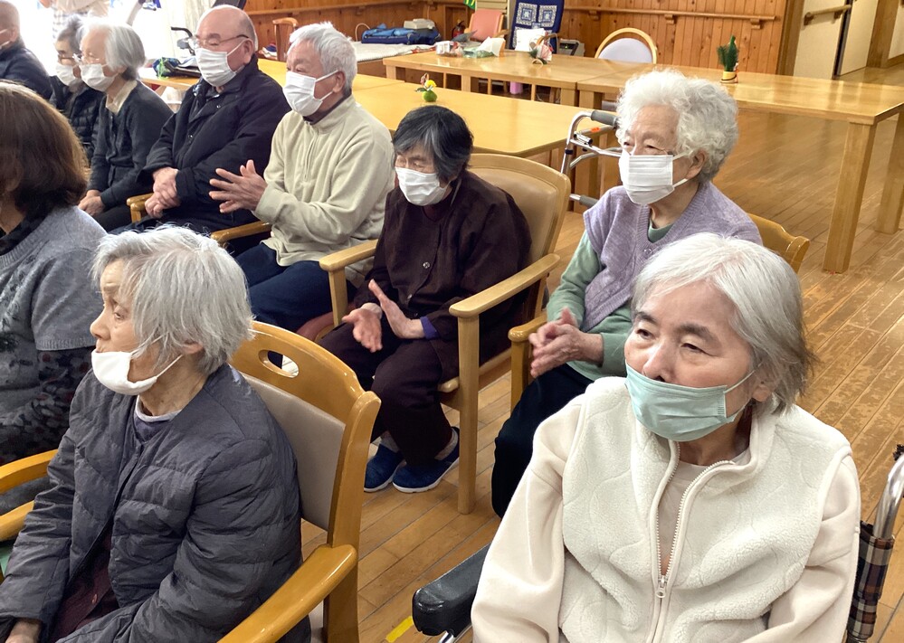 学家文学さん(憩い) 2024年01月17日 今日は大田市で活躍されている落語家の学家文学さんにお越し頂きました。 落語を間近で見れるということで皆さん楽しみにされていました!! 「河豚鍋」「権助提灯」の2演目お話してくださいました。 「面白かった!」「楽しかった!」と大好評でした! お噺の後は職員も交えて落語の演技を教えてもらいました!