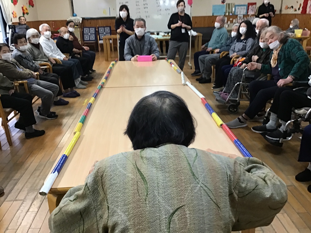 テーブルホッケー 2024年01月20日 午後からは皆さんに人気の「テーブルホッケー」をしました。 遠慮してボールを優しく打ち返す方や、力強く打ち返す方など様々でしたが、真剣勝負という事、必死に勝負しておられました! 最後は皆さんご一緒に「バンザーイ!」