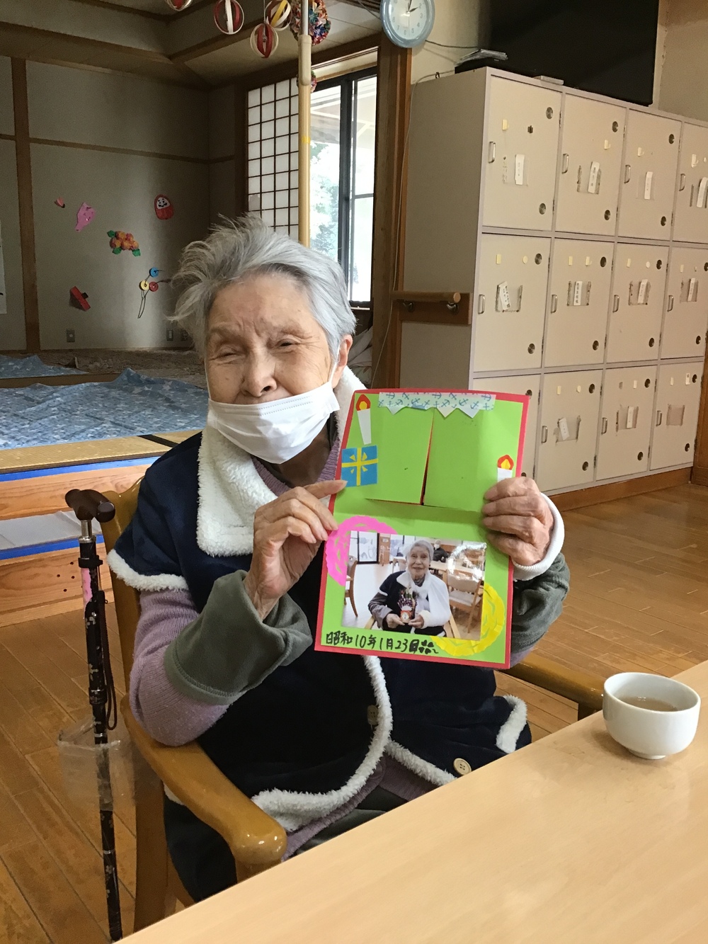 狙って! 2024年01月25日 輪投げで真剣勝負 チーム対抗で輪投げ大会をしました チューリップチームとツバキチームと名をつけて勝負! 個人での最高得点は33点、接戦でしたが 114対134でツバキチームの勝ちでした お誕生会 今月お誕生日の方のお誕生会を行いました お誕生カードのプレゼントを喜んで受け取って頂きました 元気にあさやまに通って来てください