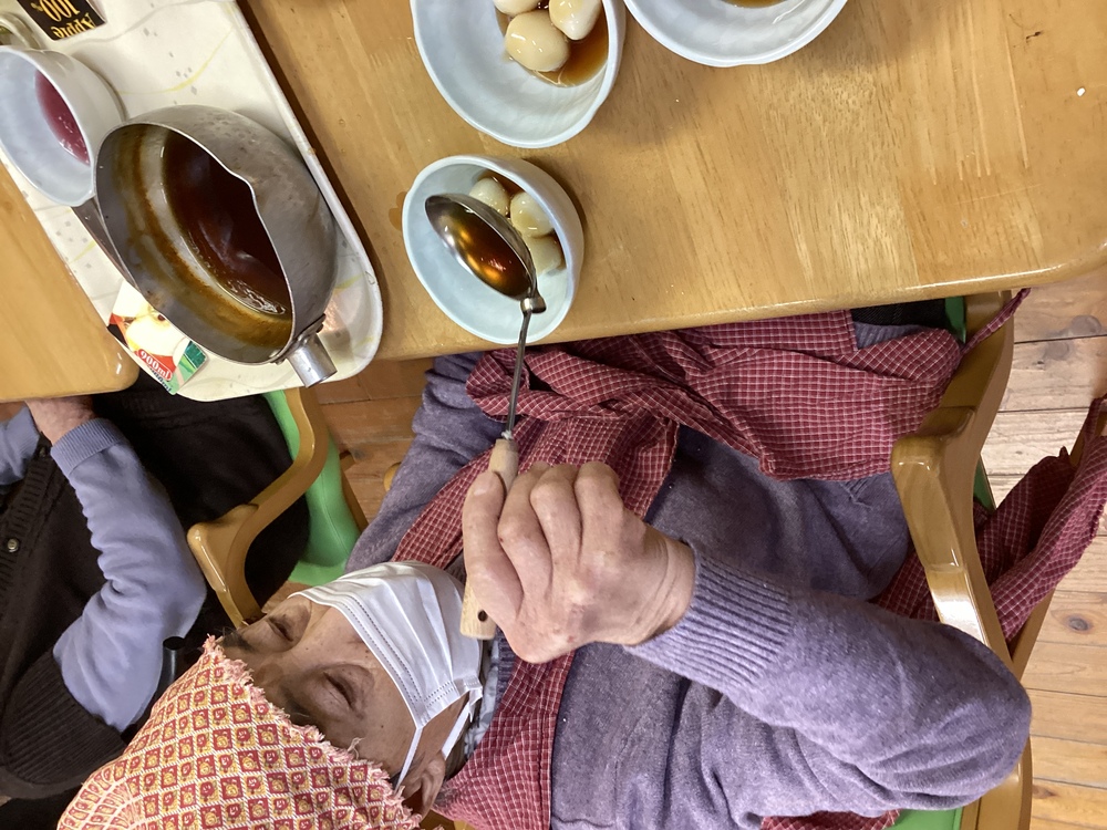 よろしくお願いします!(憩い) 2024年02月07日 本日からご利用のA様! 初日から多くの活動に参加されました! 午前中は、広告紙で箱を作って頂きました! 機能訓練では、タオル体操やレクリエーションに参加されました! そしておやつ作りにも参加され、みたらし団子を作られました! 「どのくらい入れようかな?」と慎重にたれを入れておられました! おいしくできました!