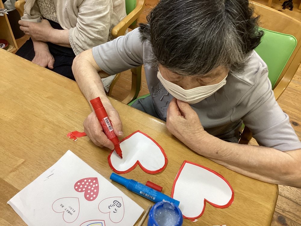 願いごと(憩い) 2024年07月08日 思い思いに書きました 社会福祉協議会のイベントポスター用に 飾るためにハートの台紙に皆さんの日頃の思いや願いごとを 書いていただきました ハートの台紙を丁寧に作っておられます それぞれに普段は口にしない思いや願いごとを、持っておられることが分かり 職員もしっかり対応していきたいと感じました 風ラン鑑賞展に行ってきました 可憐な花を見て、「可愛い花が見れてよかったわ」 と喜ばれていました
