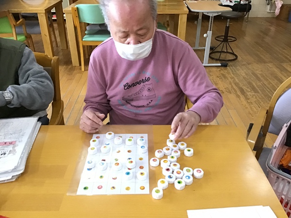 頭の体操や手指の運動、ゲームに使用する物品作りを一緒に行いました