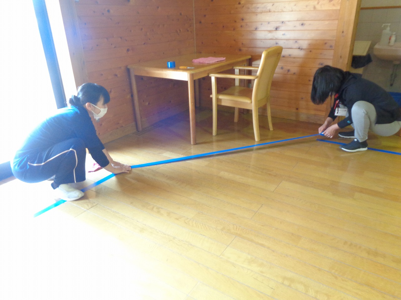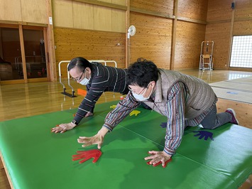 2022年04月11日 着々と進めていますリハビリルームの準備がどんどん進んでいっています。皆さんにポイントや効果など説明しながら使用していきます!皆さん物珍しいものに興味深々です!!まるでアスレチック!!「どがしてやるだぁ」と職員に訪ねて来られました。音が載せられないのが残念ですが、館内にはヒーリングミュージックがかかっており、リラックスしながらリハビリが出来る様になっています。手形や足型を置き歩幅や足の向き等を正し、よりよい歩行になるようにしたり、腕や肩をしっかり伸ばすことで筋力を付けたり、ほぐしたりする効果もあります。またリハビリルームの経過をお伝えします。お楽しみに!!