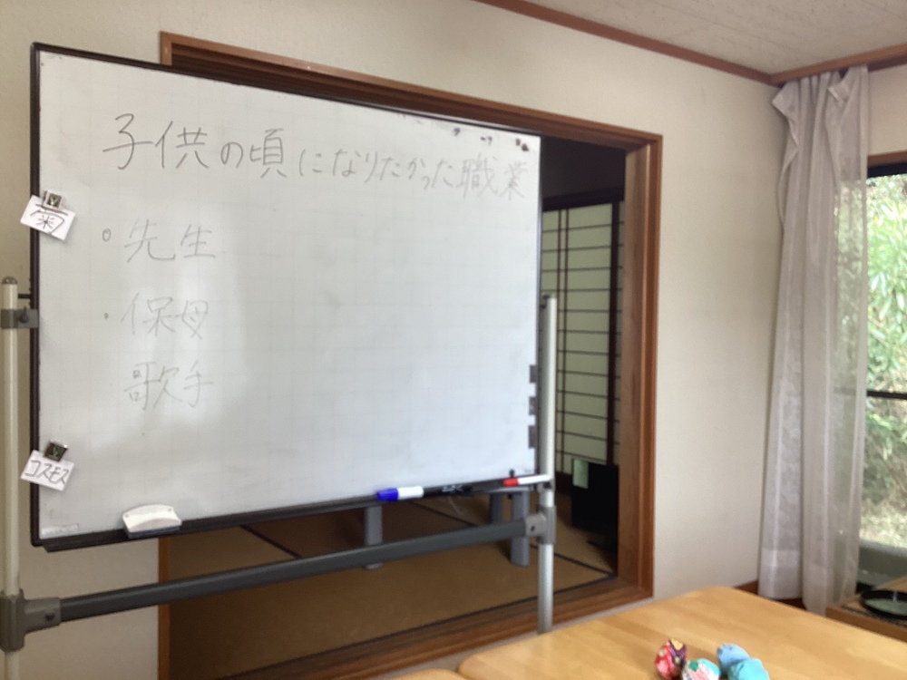 認知症実践者研修 2023年02月11日 利用者体験をしました。 車椅子に黙って座り続けることはかなりのストレスを感じます。 同じ目線に立つことで、ご利用者の気持ちを理解できる貴重な体験でした 回想法の風景 今回のお題は「昔、なりたかった職業、昔働いた職業について」 昔こうだったね~。あぁ~だったね。と話が盛り上がっていました。 最後はみなさんで昔遊んだお手玉で遊びました。