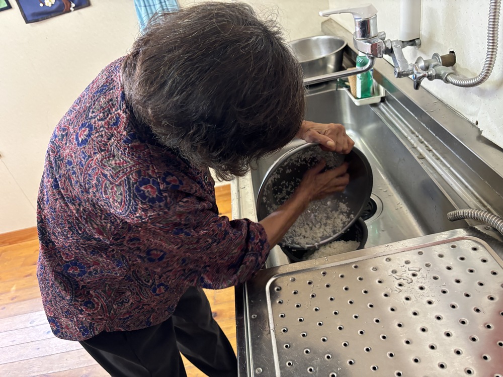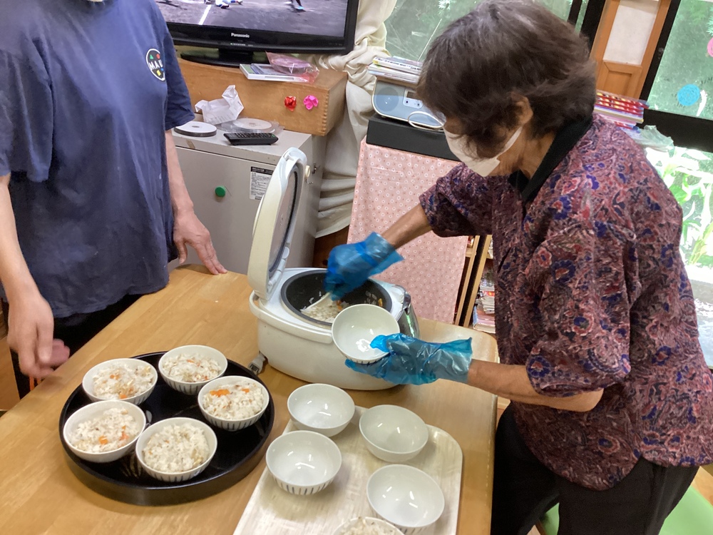 手際よく調理(憩い) 2024年08月09日 Kさんは本日炊き込みご飯作りに挑戦! しかし、職員の出番はほぼなし…、慣れた手つきで調理されました。 準備を整えて… 味付けの場面では長年培った自信がみられました。 「そんな上手じゃないわよ」と謙遜されていましたが、見事な手際でございました。 評価は抜群でした☆