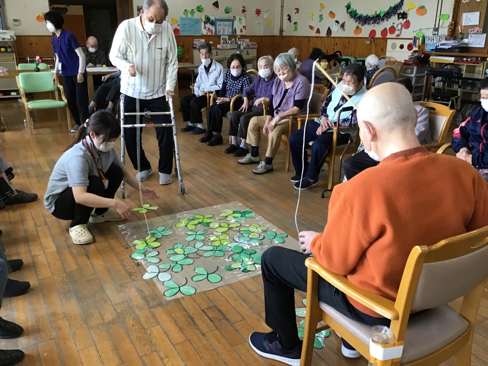 幸せの四つ葉 本日のゲームは・・・ 幸せの四つ葉、た~くさんゲットだぜ!!ゲームです 三つ葉もありますが四つ葉は高得点なので、皆さん四つ葉を狙って頑張っておられます! 来年の夏は・・・ 「ひまわりもたくさんの種類があるんだよ!」と、種を見せて下さいました 夏にはいろんな種類のお花が咲くあさやまガーデンが出来たらいいですね