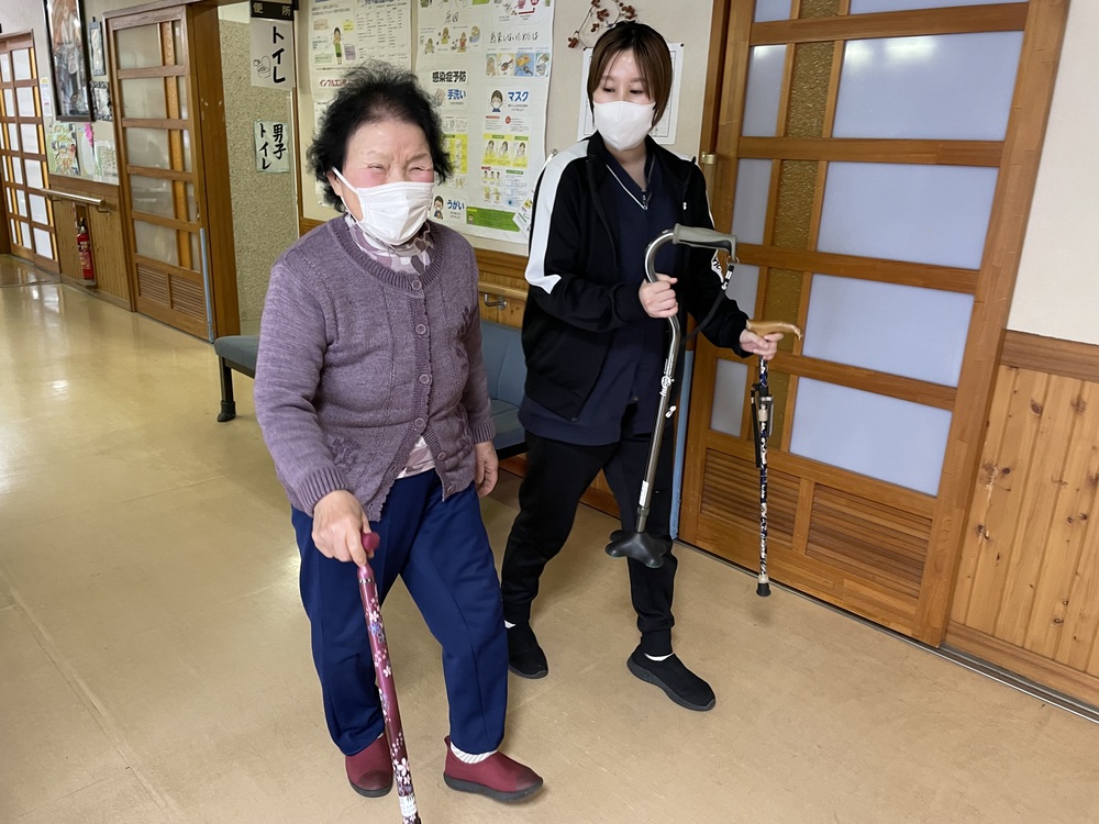 新しい杖にするにあたって機能訓練指導員が評価と指導を行いました。