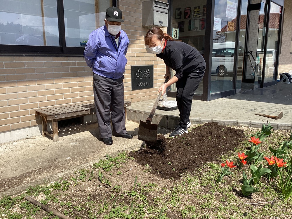 「肥料は灰だけでいい、ここから目が出るだで~」など職員に教えて下さいました!収穫が今から楽しみですね☆