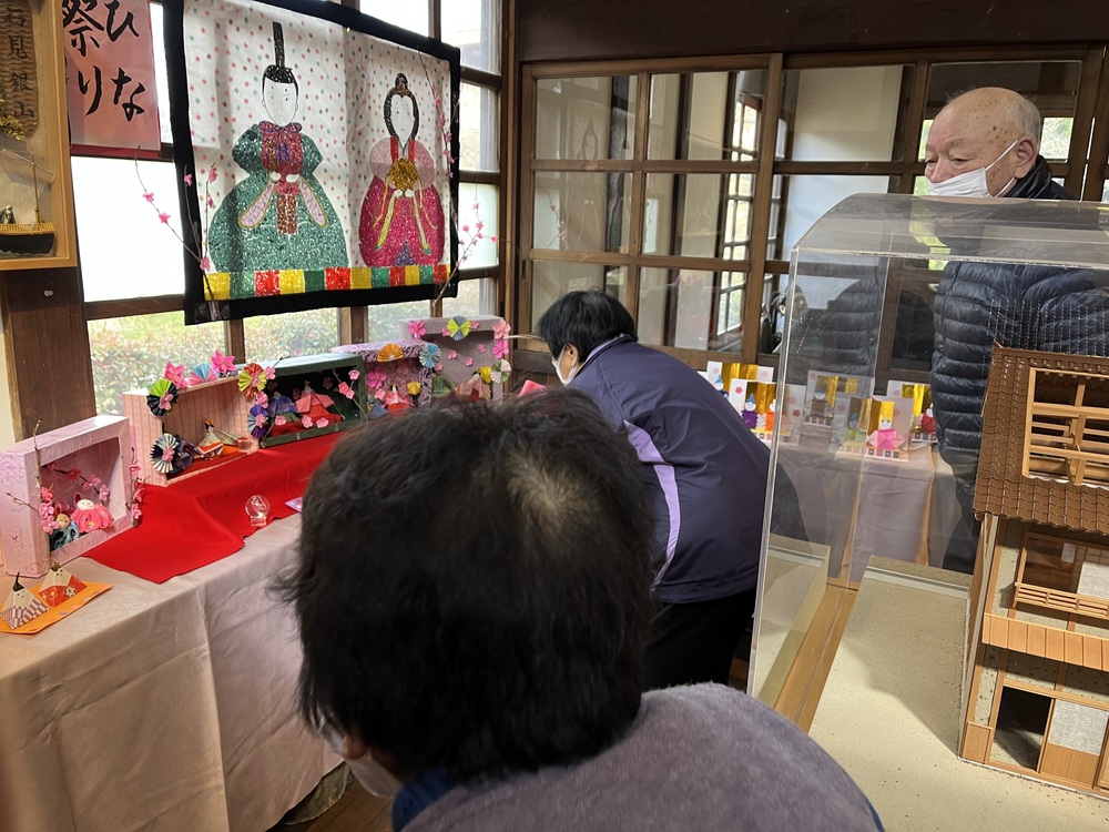 大森町おひなさま展 2023年03月13日 今年も大森町のおひなさま展に行きました。 到着後に皆さんで写真撮影。 立派なひな壇や、ビラたかやまで作った作品を眺めたりと、それぞれに楽しんでおられました。 最後は気に入った折り紙のおひな様を頂いて、「良い記念になったわ」「楽しかった」と嬉しい感想を頂きました。 皆さんに喜んで頂けるよう、今週から来週にかけて見に行く予定としています。