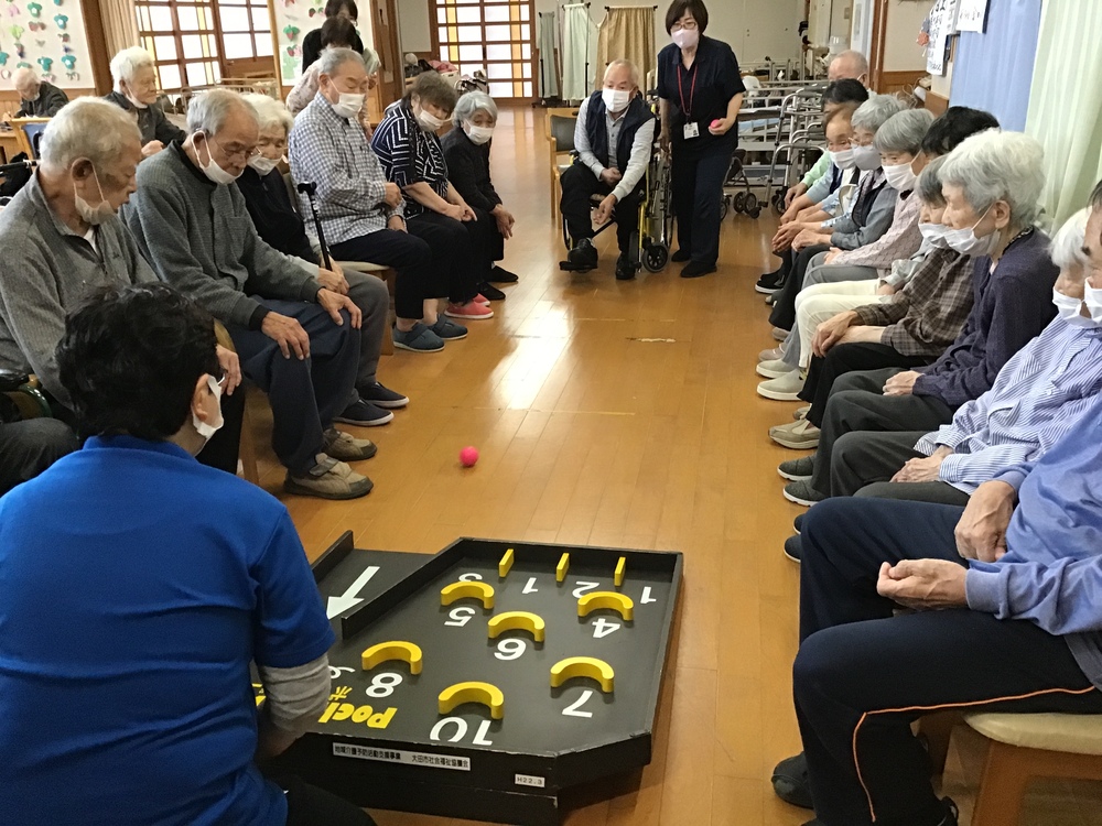 意外と難しいね‼ 2024年06月01日 早いもので5月も終わり、今日から6月ですね。 今週のゲーム、『ポケットボール』は本日が最終日‼ 1人3球ずつ転がし、入った所の数字が得点になります。 真っすぐ転がしているようでも入らなかったり、スピードが弱いと入っても元に戻ってしまったり・・・ 3球の合計の最高得点は「8点」。意外と難しいようでしたが皆さん、楽しんでおられました。 来週はどんなゲームでしょうか?来週も楽しみましょうね‼