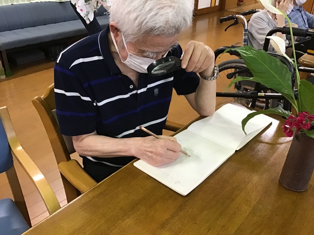 利用時の楽しみ・・・ 2024年08月24日 いつも利用時に熱心に絵を描かれているY様と作品作りをされているT様。 いつも花を描くのを楽しみにされ、下書きの後はしっかりと色も塗られています。 また作品作りをされるT様は細かい作業時にはピンセットを使用しておられます。 「ちょっと失敗したから・・・」と。新たに作成しておられます。 できあがりが楽しみですね‼