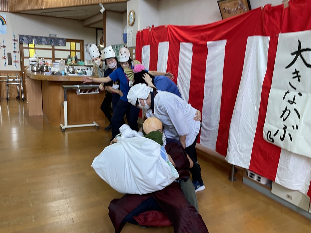 敬老会最終日です 2024年09月12日 敬老会もいよいよ最終日となりました。 職員による劇『大きなかぶ』に続き、お茶会を行いました。 利用者の方にお抹茶を点てて頂き、栗大福を召し上がって頂きました。 長寿の秘訣をお聞きすると、「たかやまに来ること!」とおっしゃってました。これからもどうぞお元気でたかやまにお越し下さい・